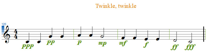 Lautstärken: von ganz leise über leise, mittellaut, laut, ganz laut bis