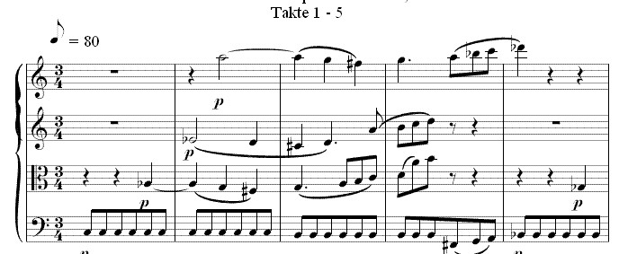 Hörbeispiel 1 ist das einleitende Andante des 1. Satzes aus dem Streichquartett KV 465 von Mozart.