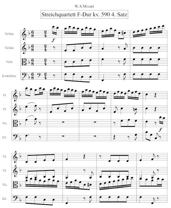 (sic!), halsbrecherisches (sic!) Tempo. Es stammt aus dem 4. Satz des Streichquartettes F-Dur, KV 590.