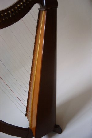 Bei den alten irischen und schottischen Clarsach wurde der Klangkörper (ohne den Boden) aus einem einzigen Stück Holz gefertigt (stell Dir dazu eine Backform für einen Kastenkuchen vor; der "Boden" der Form ist die Klangdecke). Heute sind die Klangkörper entweder aus einzelnen Vollholzteilen zusammengeleimt oder - bei preiswerten Harfen - aus gebogenen Leimholzplatten gefertigt.
