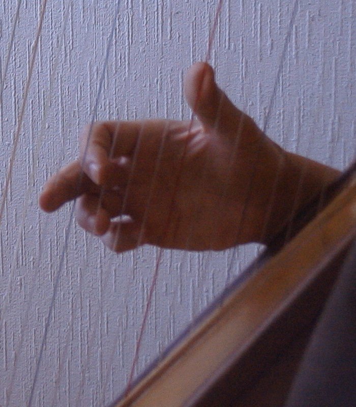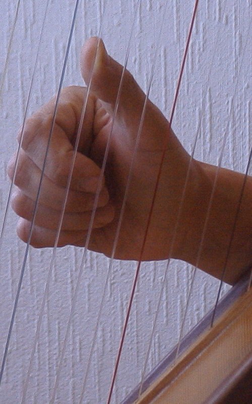 mit Zeigefinger angezupften Saite. Das stört aber nicht: es gehört Harfespiel, denn das ist weit mehr als nur das seelenlose