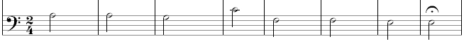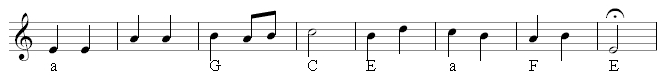 unterhalb des Mittel-C an. Reihenfolge ist "a - a - g - C - f - f - e -