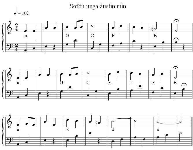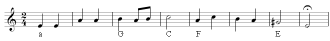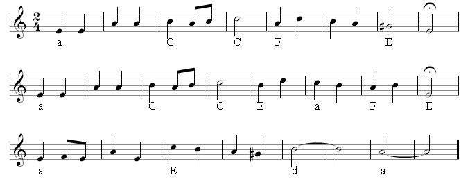 entsprechen: sie sind nur eine Sekunde höher. Hier das Hörbeispiel und die Noten: