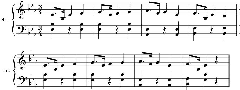 Begleitungshand) in jedem Takt einen Ton der Melodie in einer tieferen