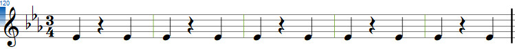 jedem Takt kommt auf Schlag eins und auf Schlag drei eine Quinte: In