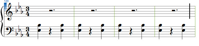 den beiden ersten Takten beide Male auf Es, in Takt drei auf As und im