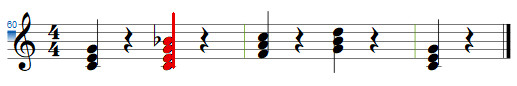 Wir erhalten ihn, wenn wir (vom C-Dur-Akkord ausgehend) statt des "H" ein "B" spielen. Das klingt schon besser als der Tonika-Septim-Akkord