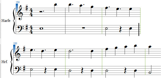 wir also auf einer C-Dur-Harfe alle Töne vom mittleren C (c') bis zum